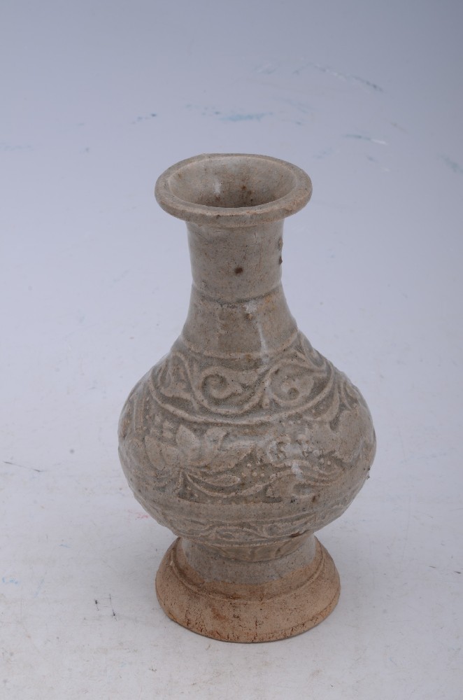 元青白(bái)釉印纏枝蓮紋長(cháng)頸瓶