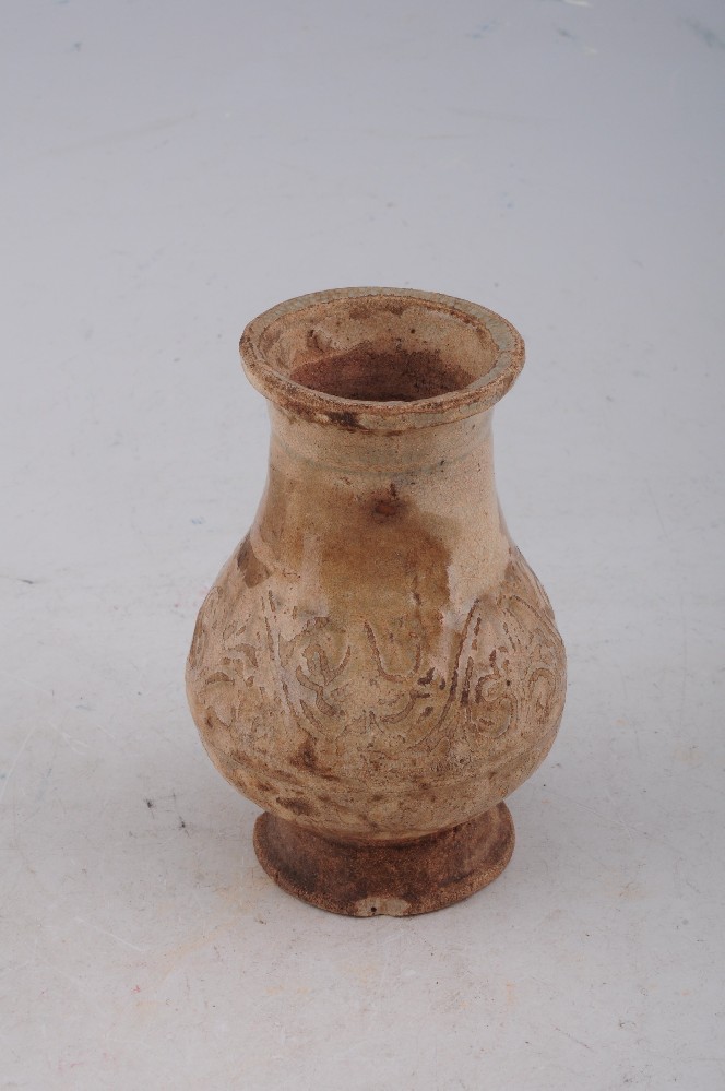 唐褐釉刻劃海(hǎi)水(shuǐ)紋罐