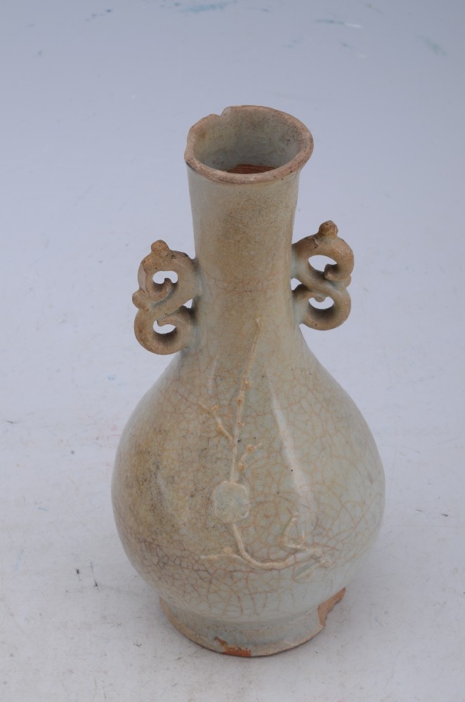元青白(bái)釉印折枝梅紋雙耳瓶