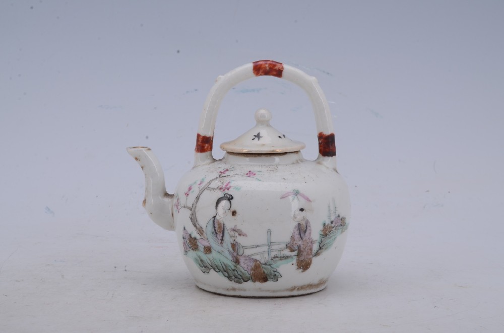 民(mín)國(guó)同治款粉彩人(rén)物(wù)紋提梁壺