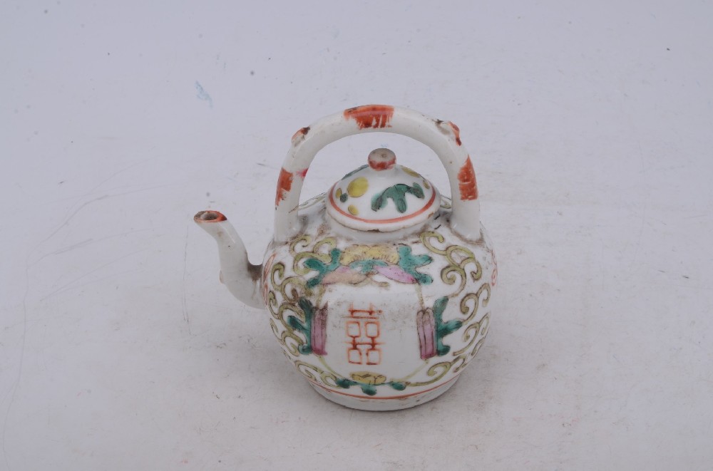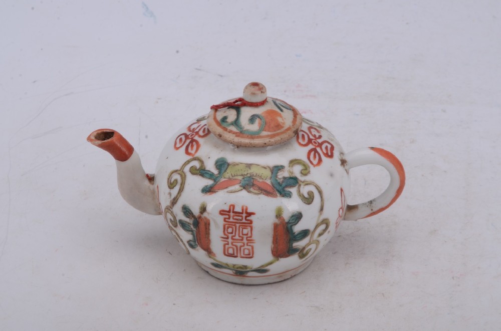 民(mín)國(guó)粉彩纏枝紋雙喜紋提梁壺