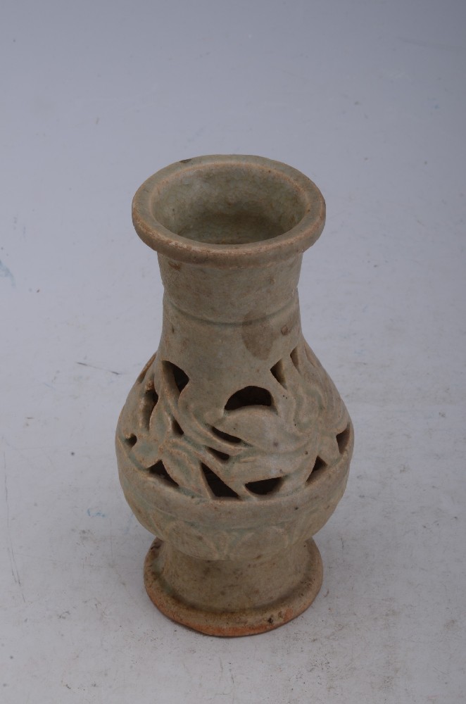 元青白(bái)釉镂空(kōng)印花(hσ&↑≠uā)卉紋花(huā)瓶
