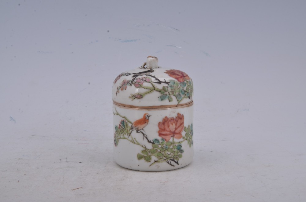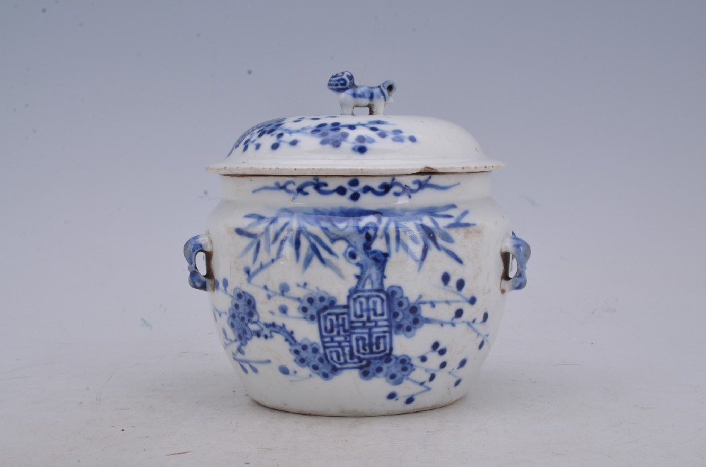 民(mín)國(guó)青花(huā)花(huā)卉四©≤↑≤系獅紐蓋罐