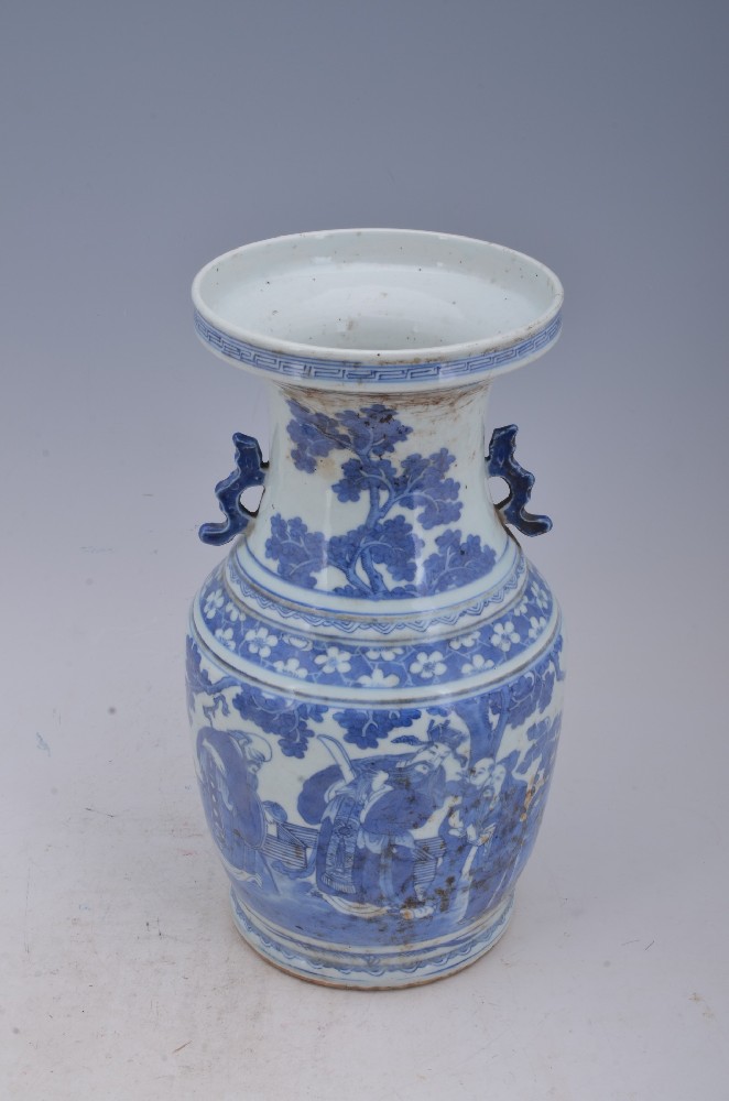 民(mín)國(guó)青花(huā)福祿壽三星花€σ<(huā)卉紋雙耳瓶