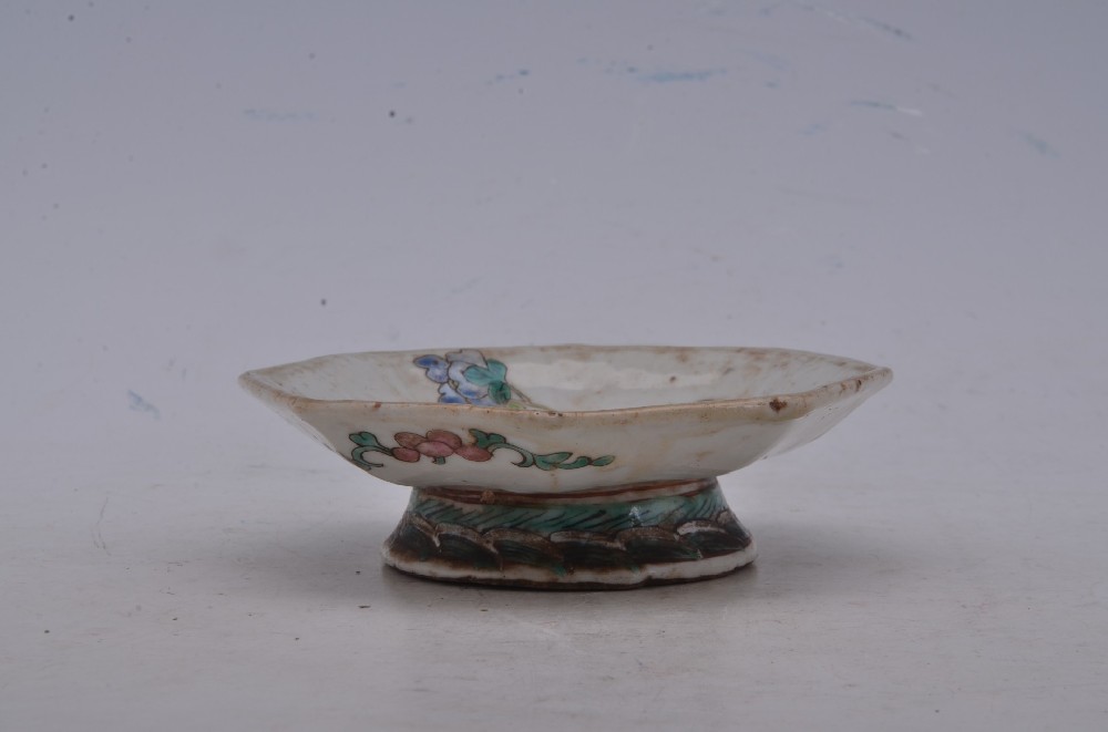 清同治款粉彩花(huā)鳥紋菱形碟