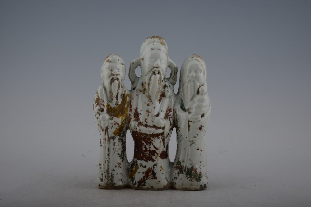 民(mín)國(guó)白(bái)釉三聯三星像