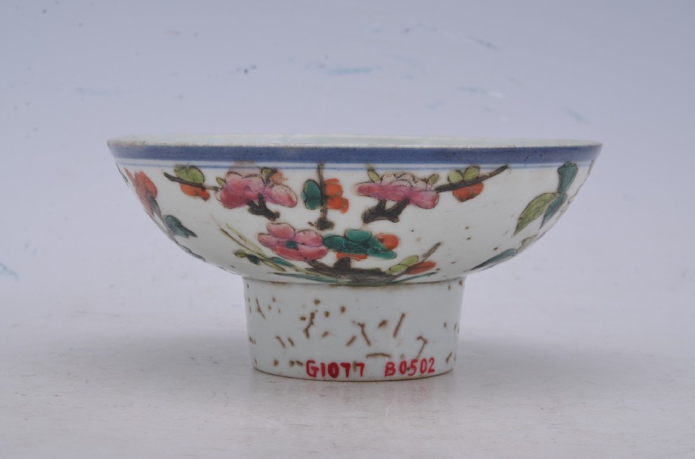 民(mín)國(guó)五彩花(huā)卉紋高(gāo)足碗
