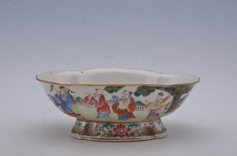 民(mín)國(guó)粉彩八寶圖四方抹角花(huā)口碗