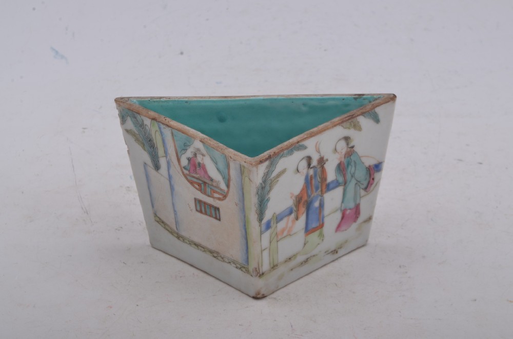 清光(guāng)緒款粉彩人(rén)物(wù)故事(shì)紋三角§形直壁盤