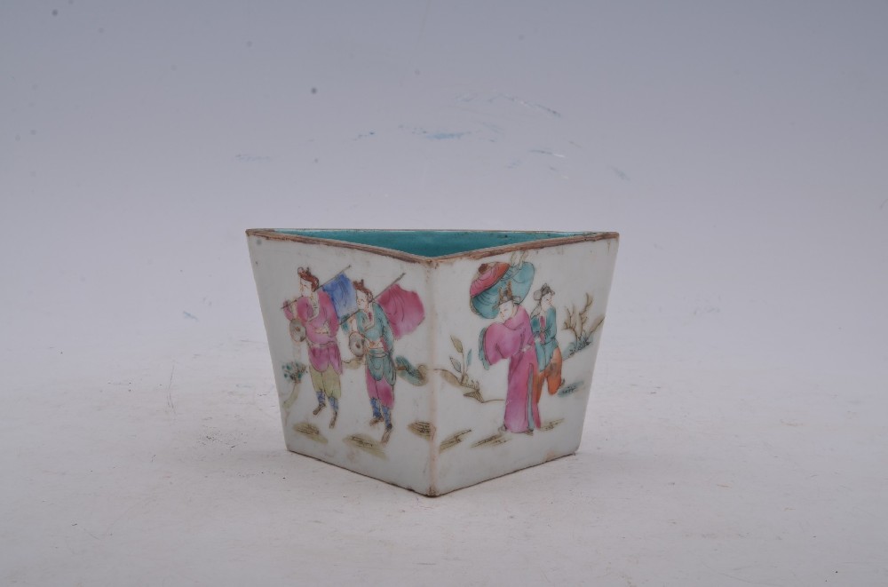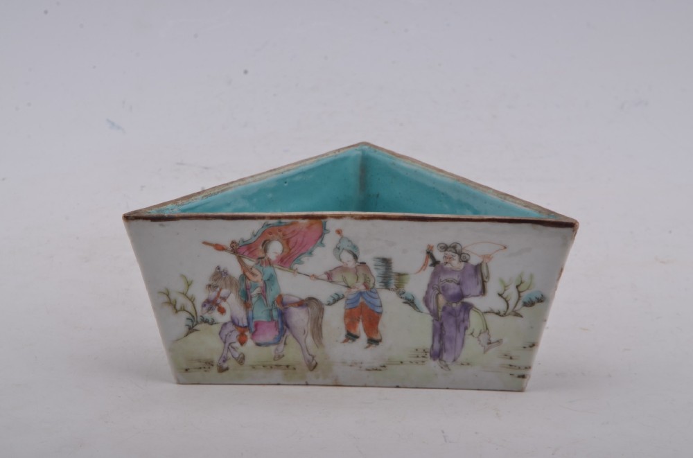 清光(guāng)緒款粉彩人(rén)物(wù)故事(shì)紋三角形直壁盤