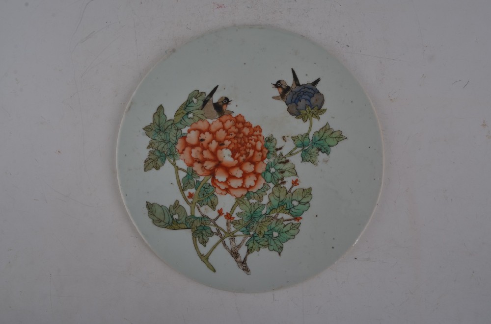 民(mín)國(guó)粉彩花(huā)鳥紋圓瓷闆畫(h¶>✘&uà)