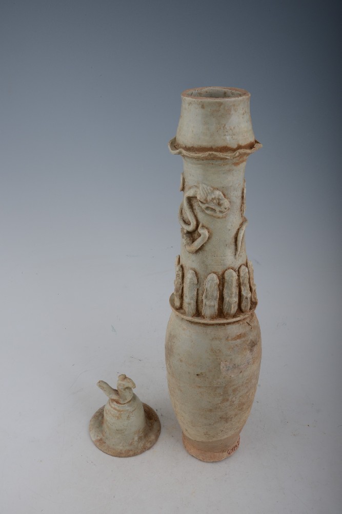 宋青白(bái)釉堆塑人(rén)物(wù)龍紋蓋瓶
