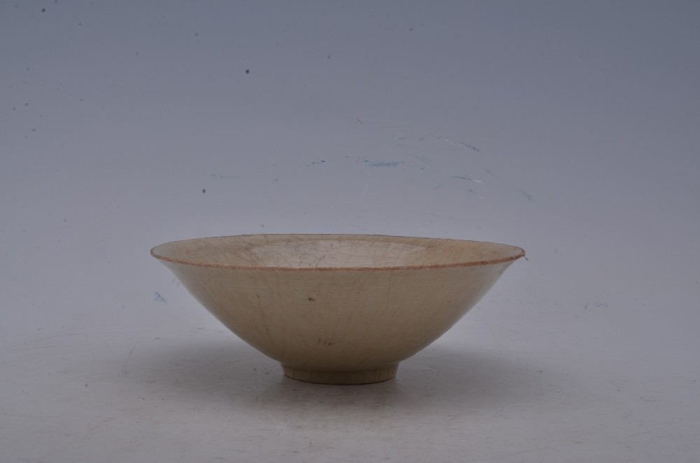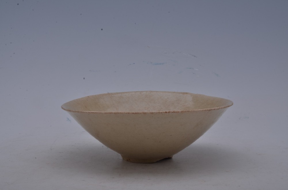 宋青白(bái)釉劃花(huā)篦紋敞口碗