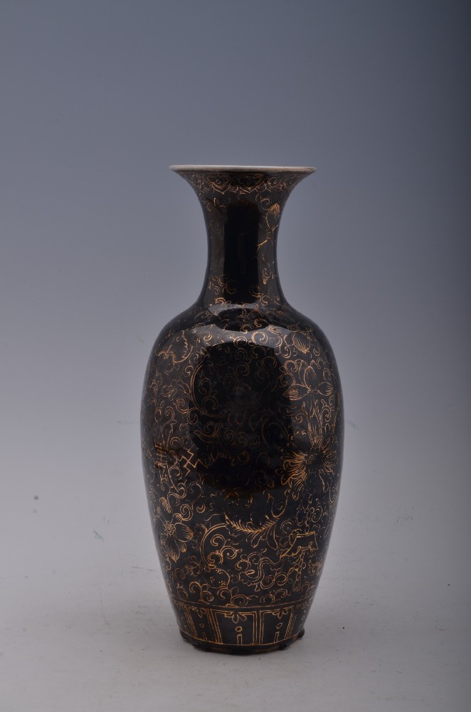 民(mín)國(guó)烏金(jīn)釉地(dì)描→♠Ω₽金(jīn)纏枝花(huā)卉萬壽紋瓶