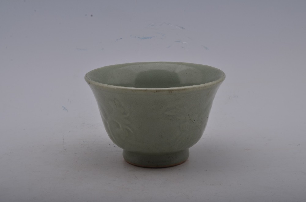 清青釉模印花(huā)卉紋深腹碗