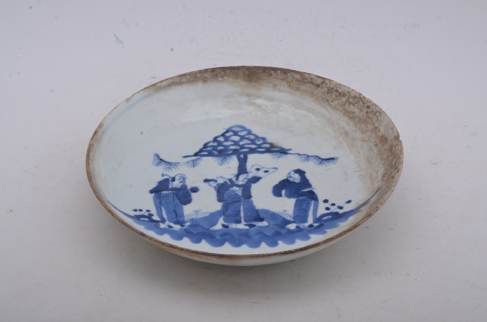 清“玩(wán)玉”款青花(huā)福祿壽三星盤