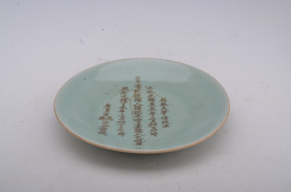 清光(guāng)緒刻墓主名豆青釉盤