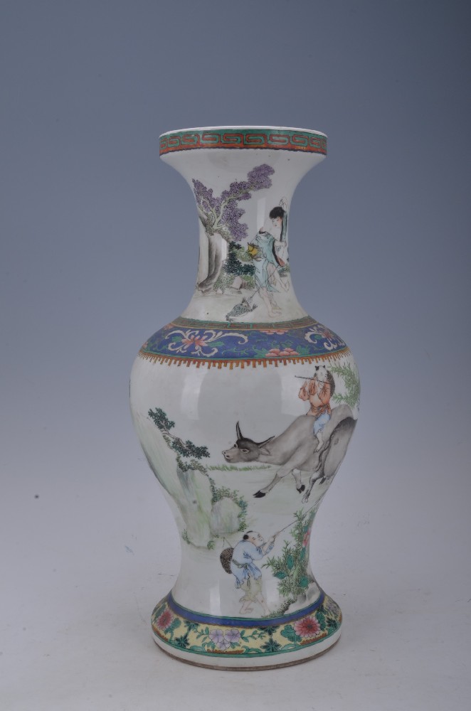 民(mín)國(guó)粉彩牧牛劉海(hǎi)戲蟾圖盤口瓶
