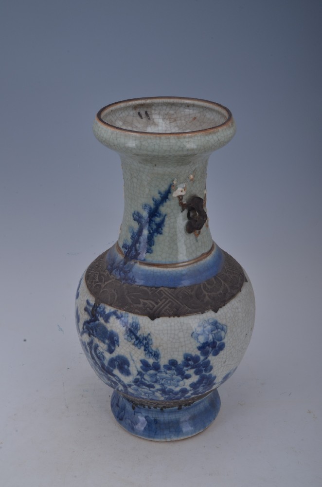 清仿哥(gē)釉青花(huā)雙雀登梅鐵(tiě)骨泥雙耳瓶
