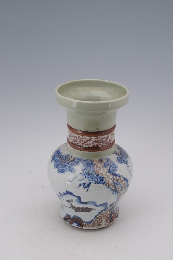 清雍正款青花(huā)釉裡(lǐ)紅(hóng)松鶴鹿觀音(yīn)尊