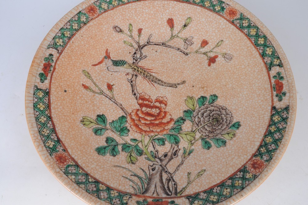 清仿哥(gē)釉五彩牡丹鳳凰紋盤
