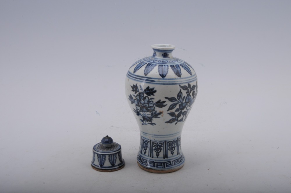 明(míng)青花(huā)折枝花(huā)果<™紋帶蓋梅瓶