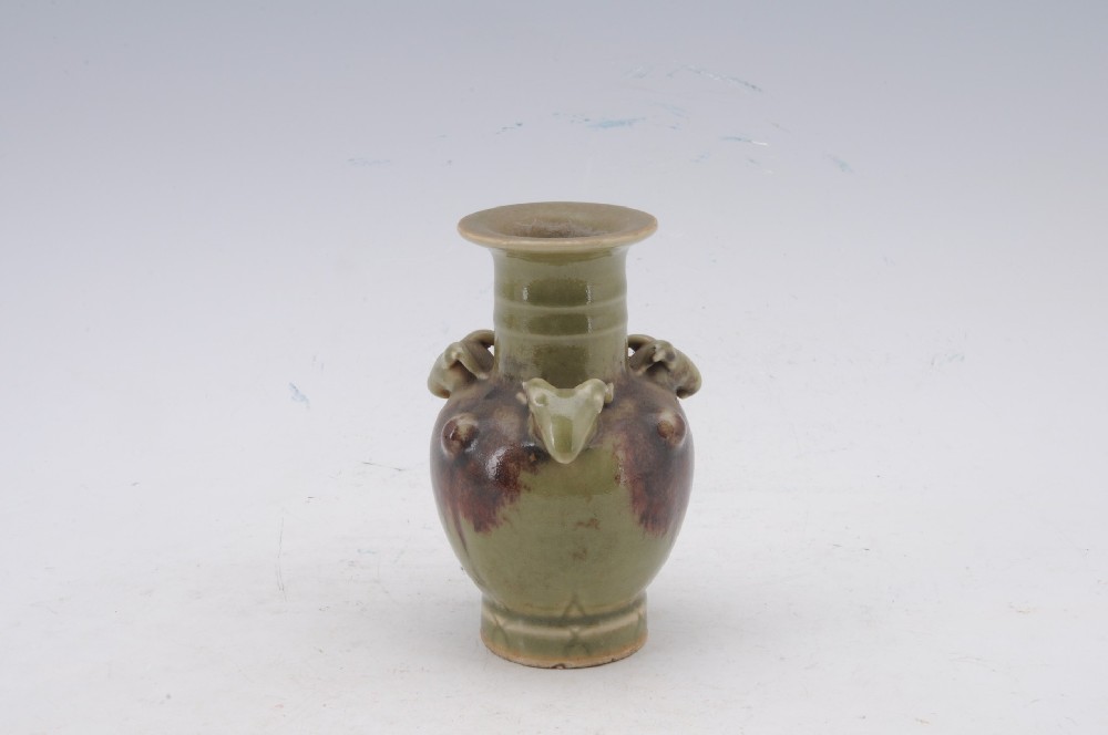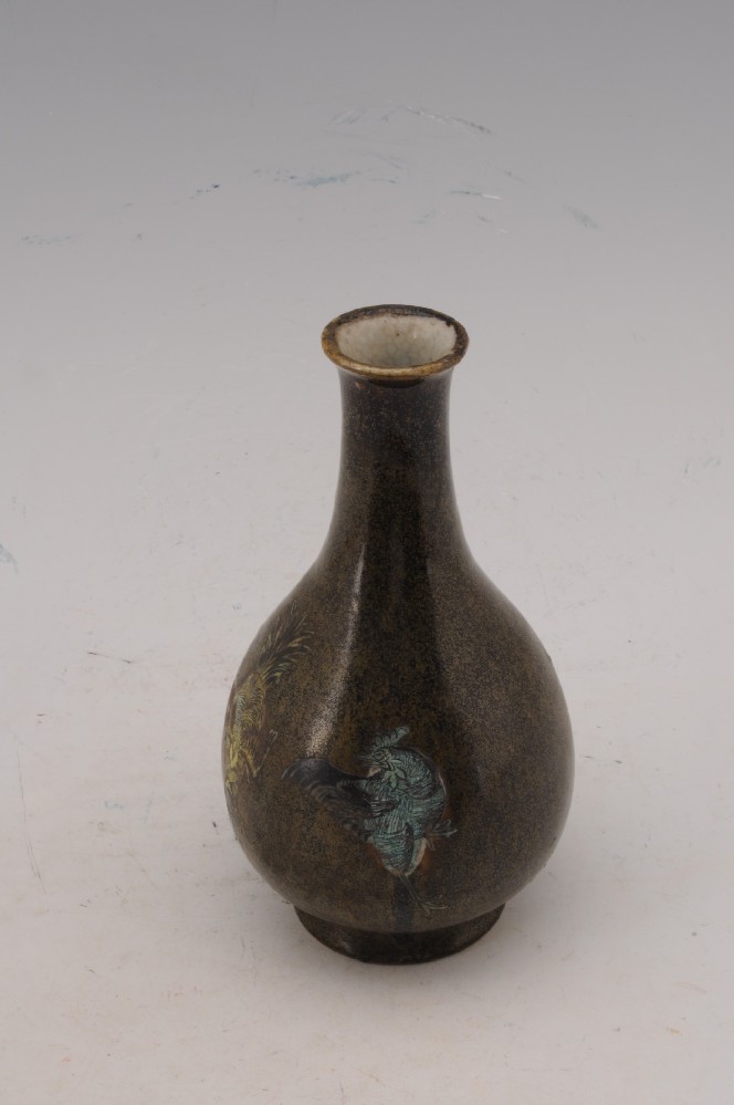 清茶葉末釉三彩雞公紋玉壺春瓶