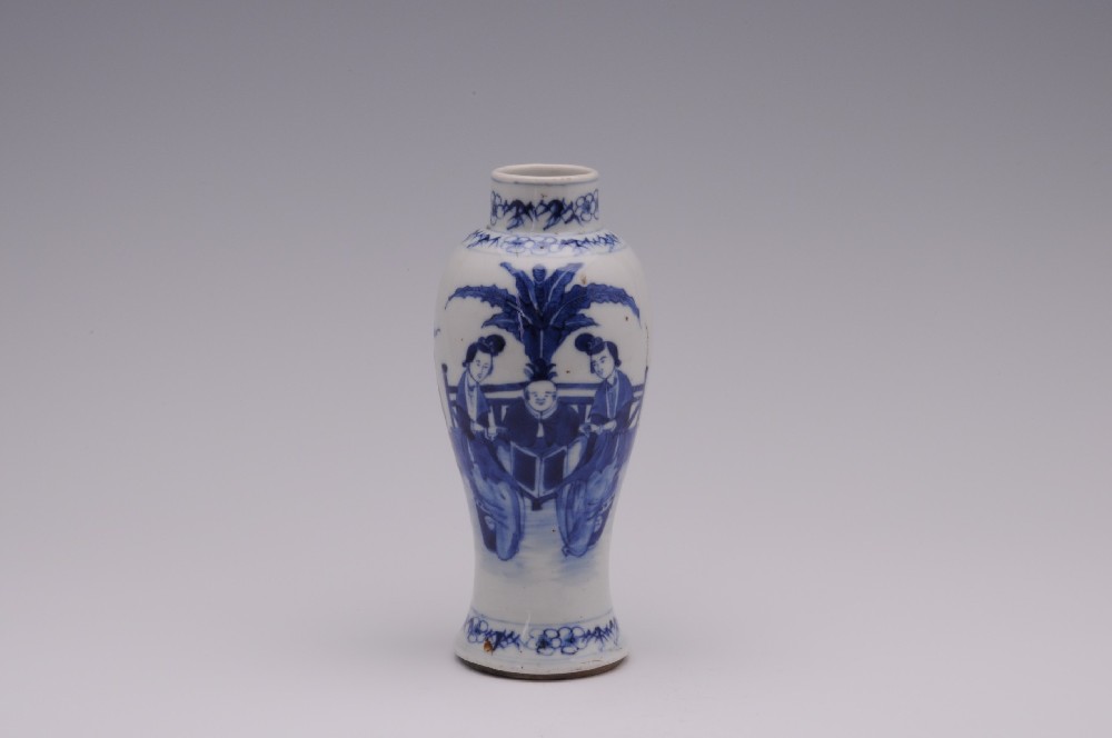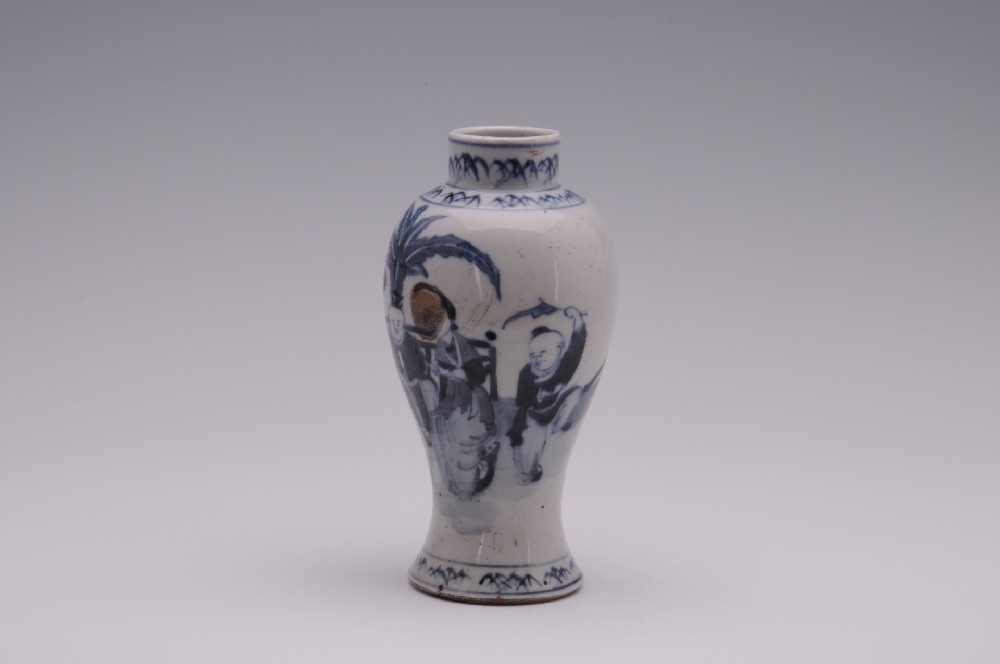 民(mín)國(guó)青花(huā)仕女(nǚ)嬰戲紋高(gāo)領瓶