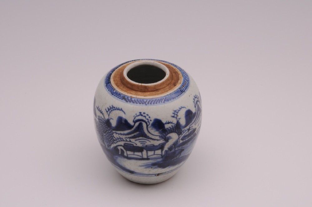 清青花(huā)江帆樓閣圖蓋罐