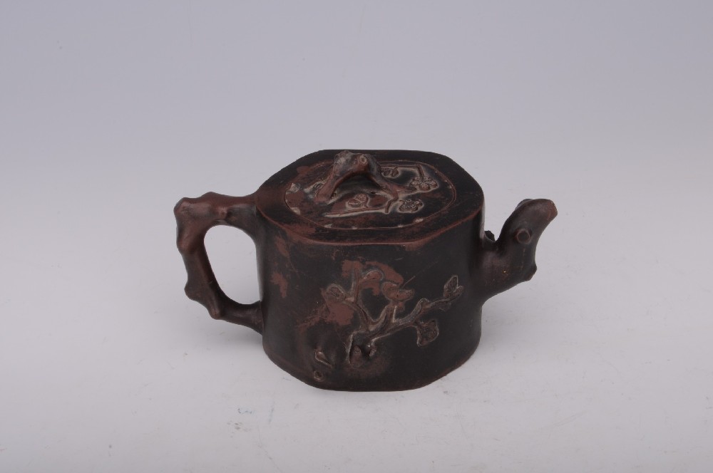 清“貞友(yǒu)”款堆塑紡仿梅樁紫砂壺