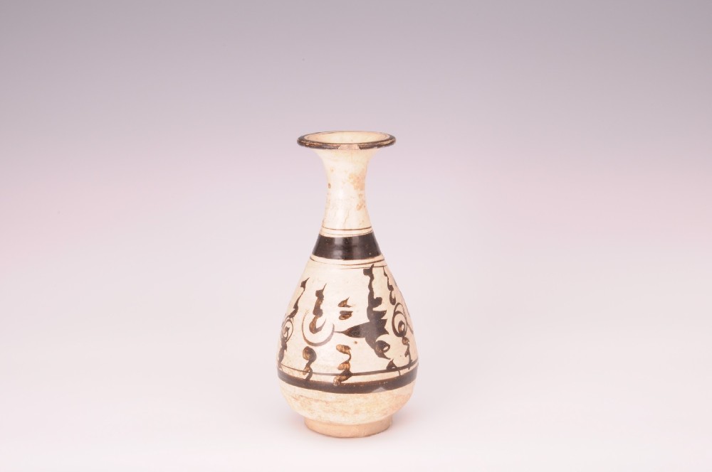宋磁州窯白(bái)釉釉下(xià)褐彩草(cǎo)葉紋玉壺春瓶