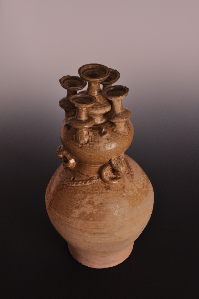 東(dōng)漢青瓷五聯堆塑龍虎紋瓶