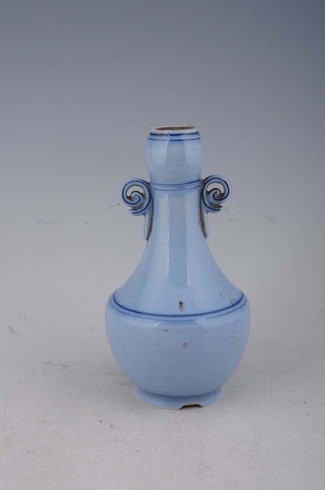 民(mín)國(guó)藍(lán)釉青花γ₩(huā)弦紋雙耳瓶