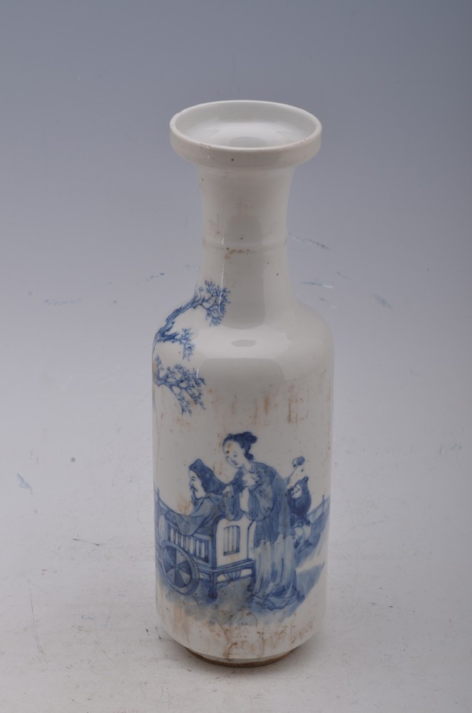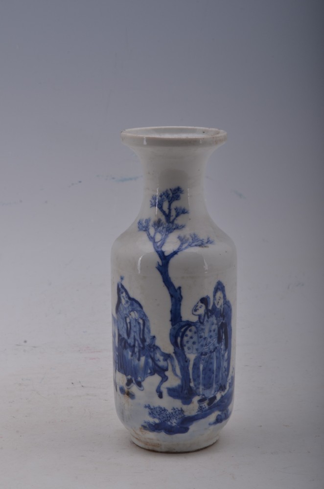 民(mín)國(guó)康熙款青花(huā)人(rén)物(wù)故事(shì)紋棒£≈∏$槌瓶