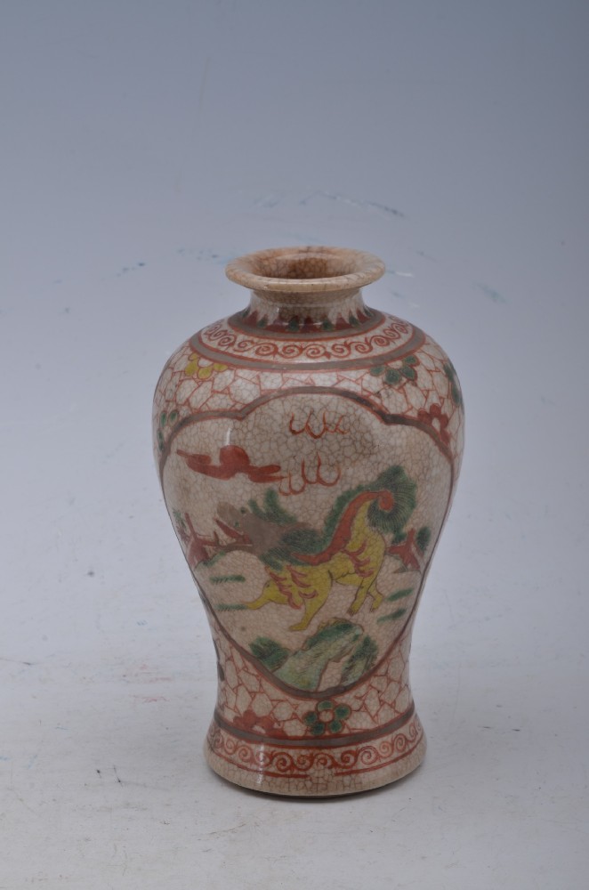 民(mín)國(guó)仿哥(gē)釉錦地(dì)開(kāi)光(guāng)™五彩獅紋梅瓶