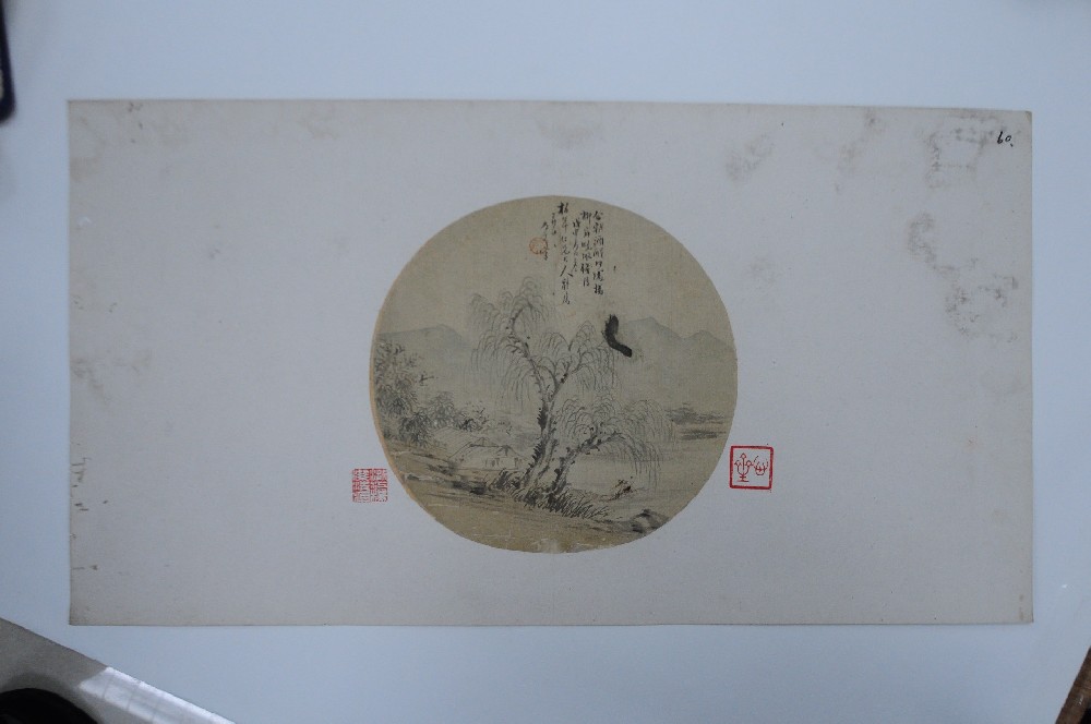 清萬青設色山(shān)水(shuǐ)圖圓形絹本扇面