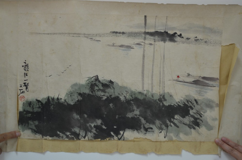 現(xiàn)代許又(yòu)石贛江一(yī)瞥山(shān)水(shuǐ)圖紙(zhǐ)本橫披