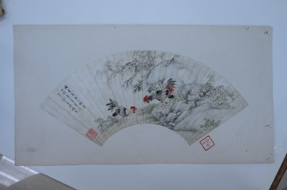 清張熊鬥雞圖紙(zhǐ)本扇面