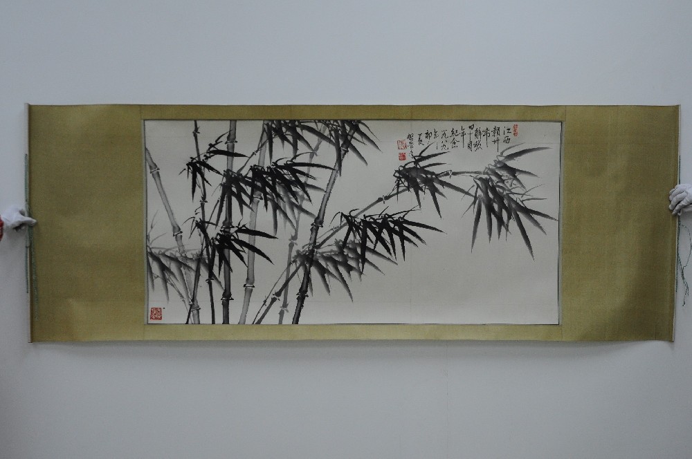 現(xiàn)代賀晉年(nián)作(zuò)水(shuǐ)墨将軍竹圖紙(zhǐ)本橫披