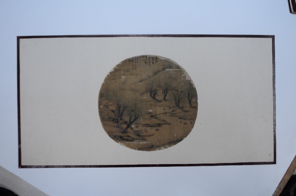 清楊少(shǎo)春設色五月(yuè)江南(nán)新雨≈(yǔ)歇山(shān)水(shuǐ)圖圓形絹本扇面