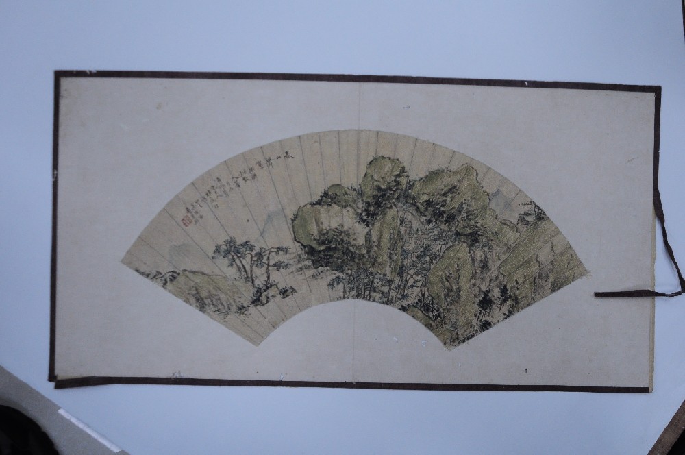 清章(zhāng)景熙春山(shān)聳翠山(shān)水(shuǐ)圖紙(zhǐ' $)本扇面
