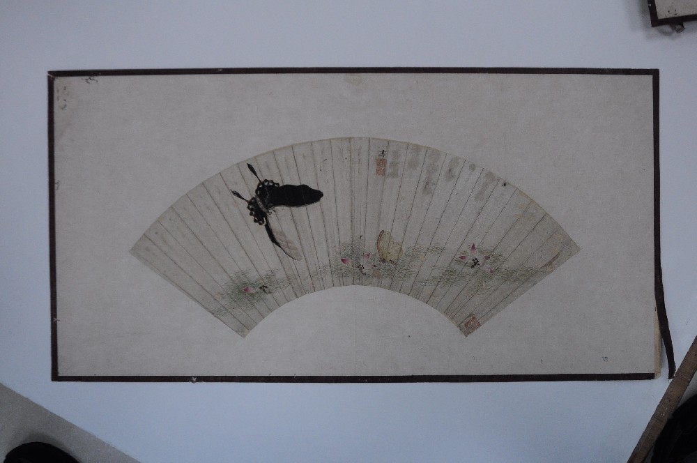 清陳書(shū)蝴蝶荷花(huā)圖紙(zhǐ)本扇面