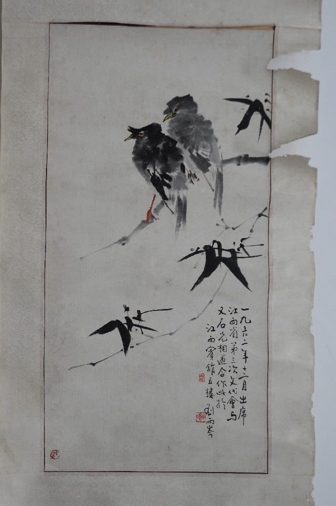 現(xiàn)代許又(yòu)石劉雨(yǔ)岑雙鵲栖枝圖紙(zhǐ)本 ≤≠α立軸