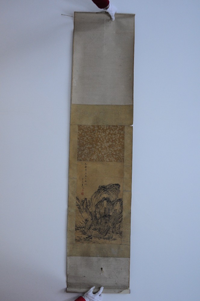 清奚岡山(shān)水(shuǐ)樵夫圖絹本立軸