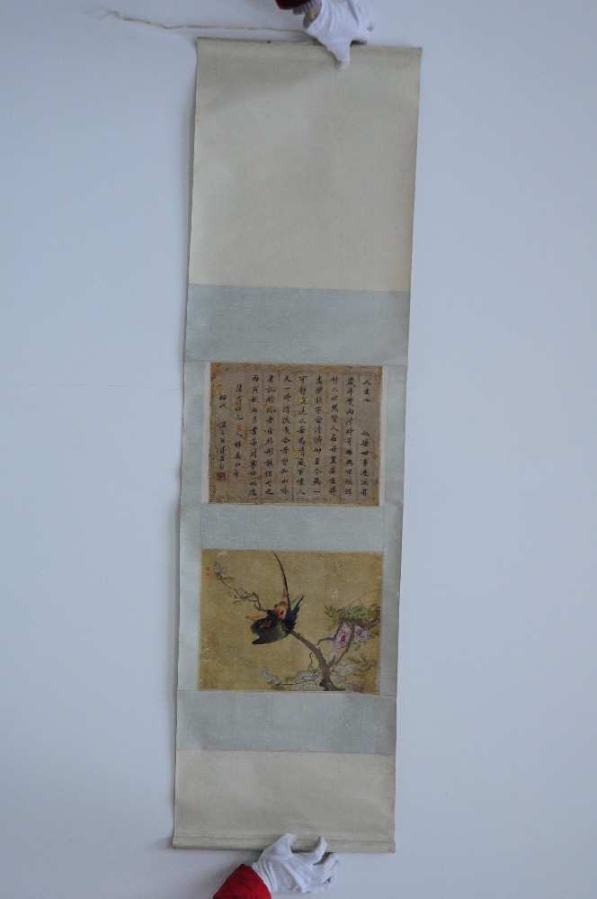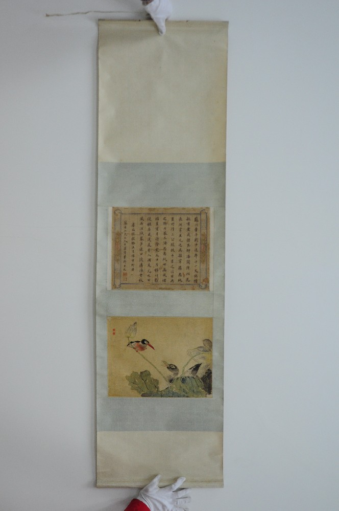 清華岩荷花(huā)翠鳥圖鬥方絹本條屏