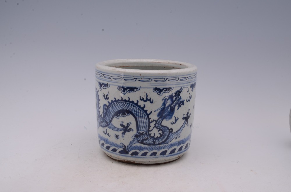 清青花(huā)雙龍戲珠紋圈足直筒爐