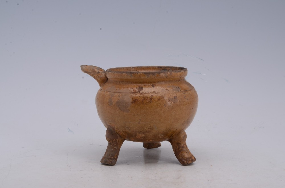 清黃(huáng)褐釉龍首流龍身(shēn)提梁壺