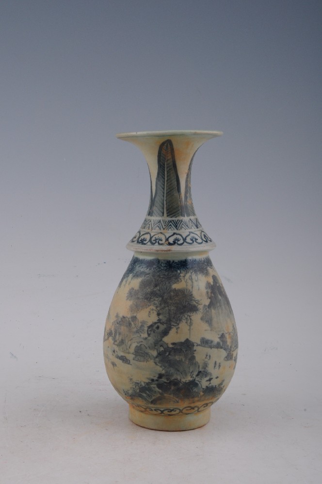 民(mín)國(guó)青花(huā)山(shān)水(shuǐ)蕉葉紋瓶