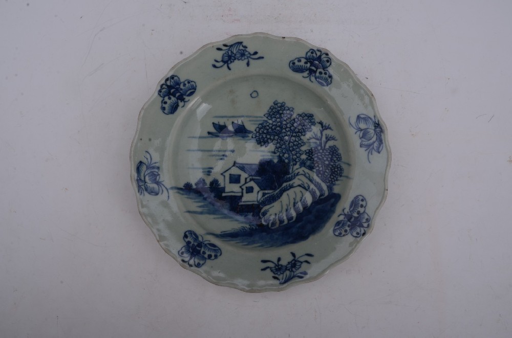 清豆青釉青花(huā)山(shān)水(shuǐ)紋葵口盤