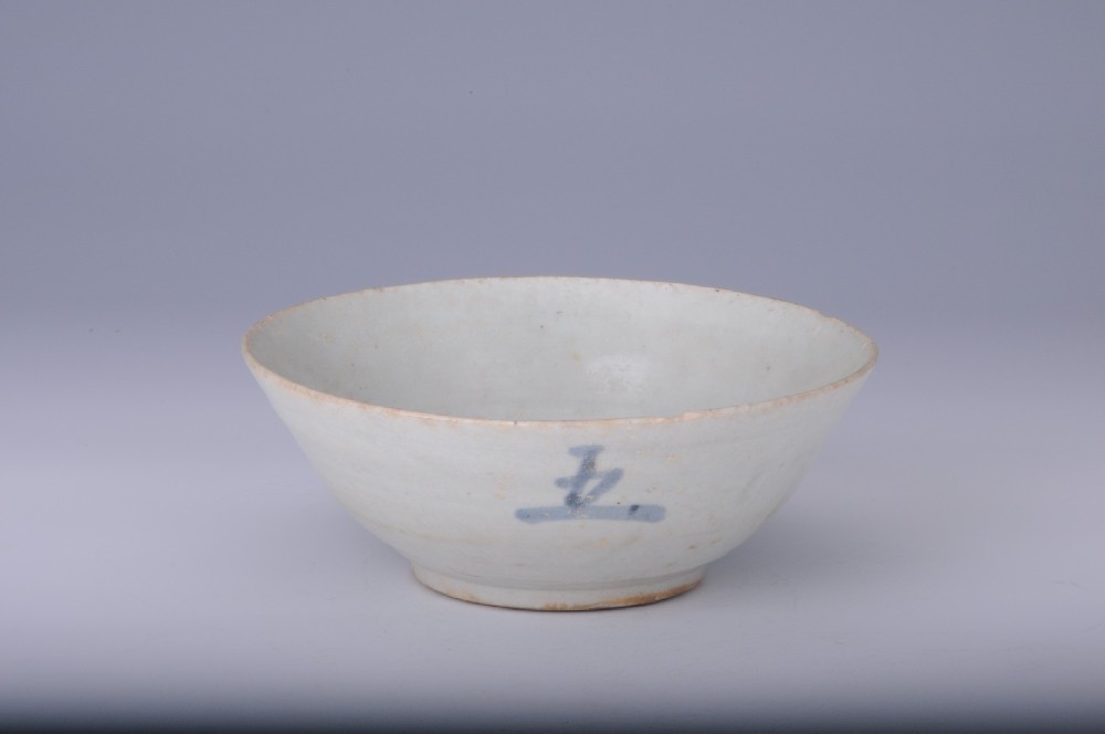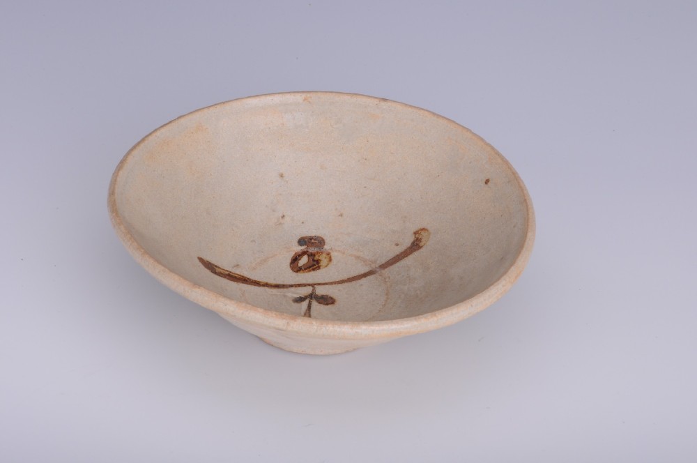 宋吉州窯白(bái)釉“吉”字款敞口碗